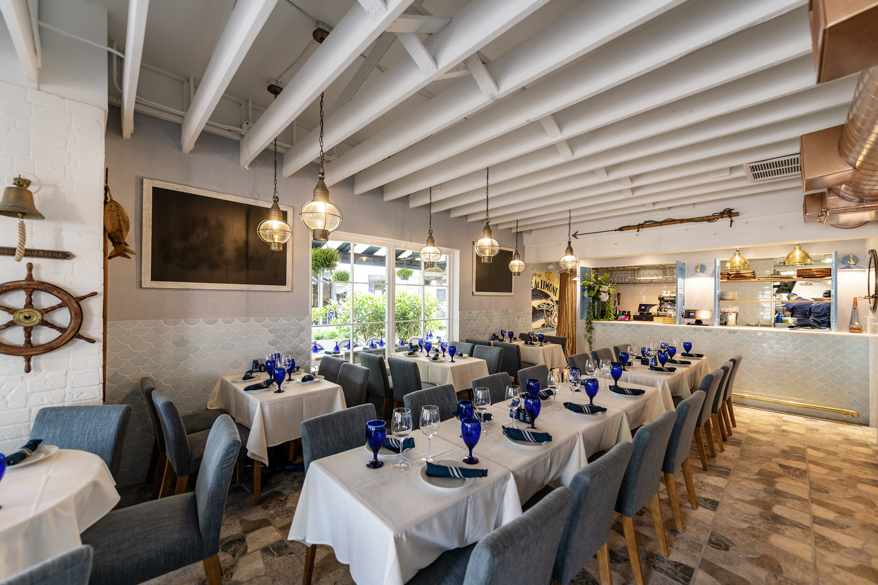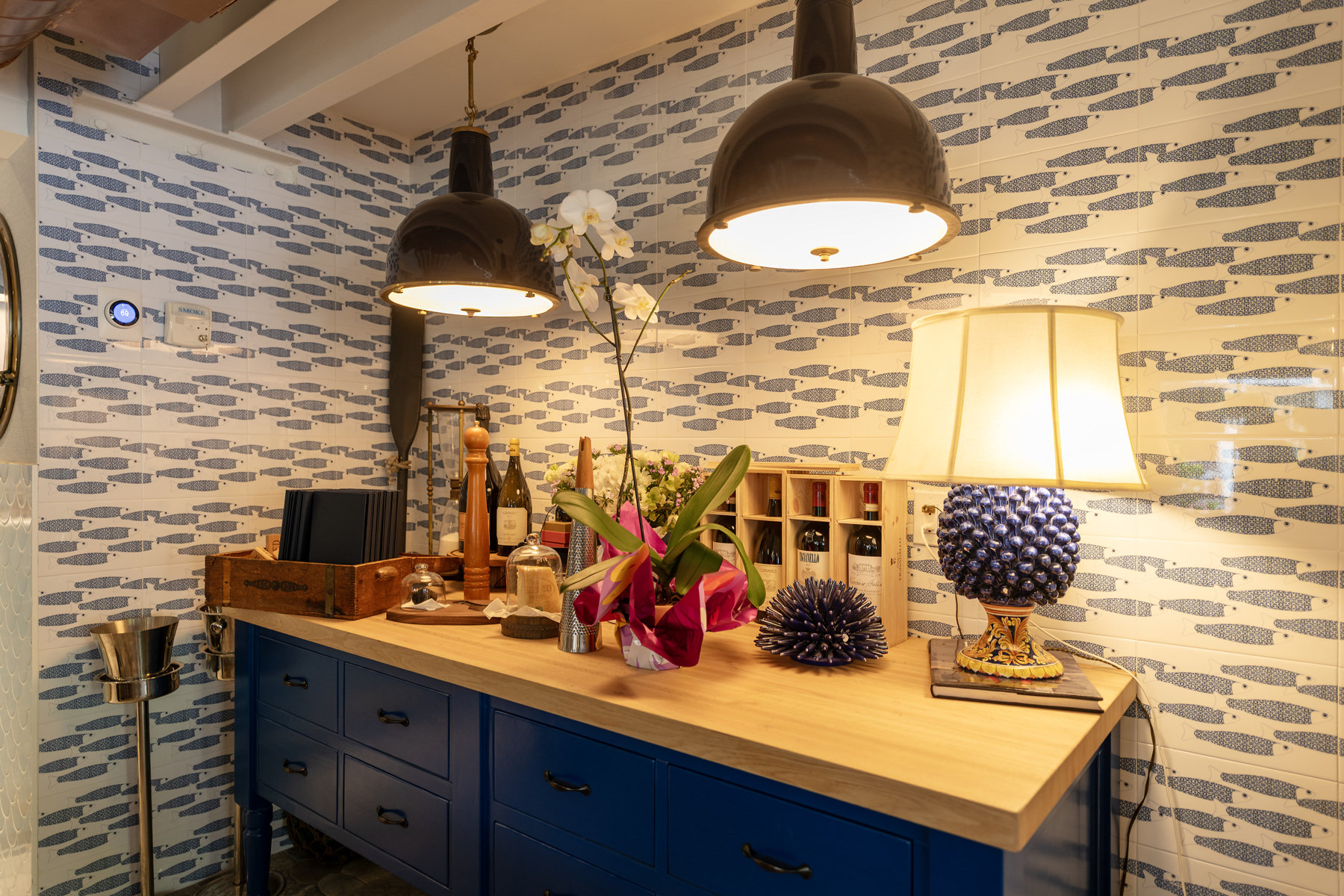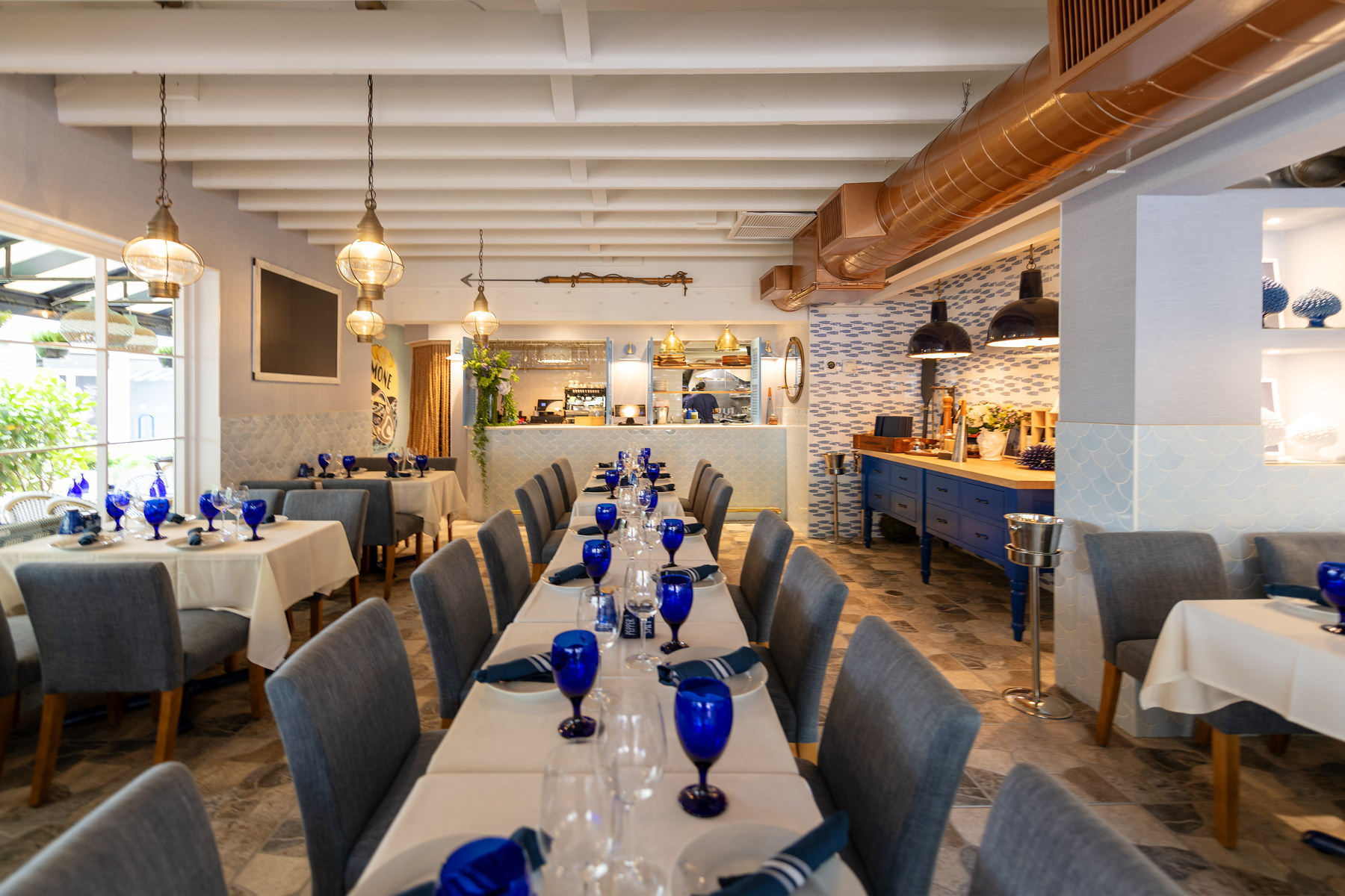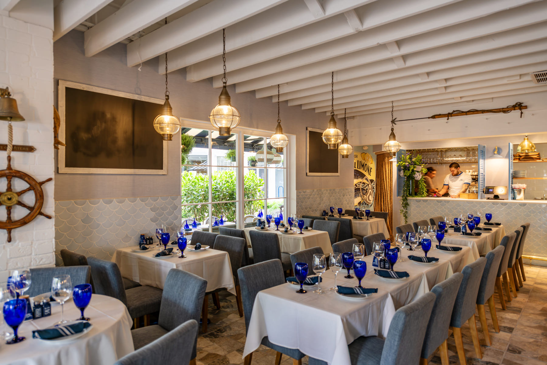 Sapore di mare is in fact is a small restaurant with few tables and seats, furnished as if it were a boat, with the typical colors of Capri and the Amalfi Coast.